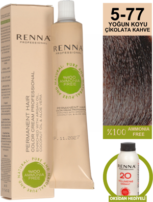 Bitkisel Amonyaksız Saç Boyası 60 Ml 5-77 Yoğun Koyu Çikolata Kahve Oksidan Hediyeli