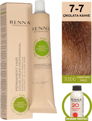 Bitkisel Amonyaksız Saç Boyası 60 Ml 7-7 Çikolata Kahve Oksidan Hediyeli