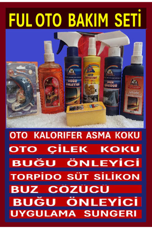 7 Li Oto Bakım Seti -Buğu Önleyici*Süt Silikon*Buz Çözücü*Kalorifer Asma Koku*Uygulama Sün.