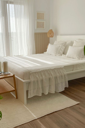 Yatak Runner & Iç Dolgulu Kırlent Seti Çift Kişilik Fırfırlı Vintage Krem Çeyiz, Yatak Örtüsü