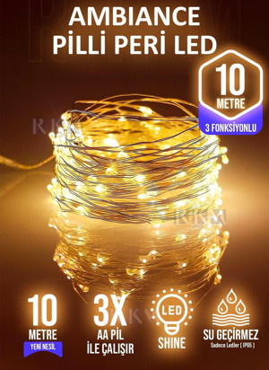 Peri Led Işık 10 Metre Gün Işığı 3 Pilli Fonksiyonlu Dekoratif Led Işık