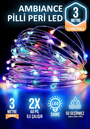 Dekoratif 3 Metre Rgb Pilli Peri Led Aydınlatma Fonksiyonlu Parti Yılbaşı Süsleme