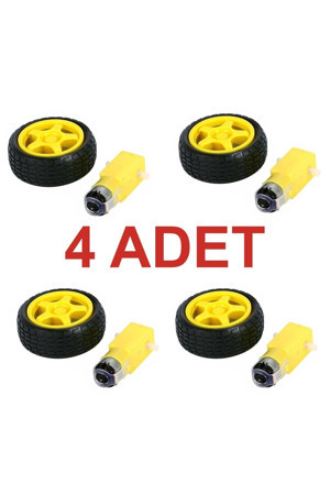 4 Adet - Arduino Robot Tekerlek Ve Dc Motor Seti - Redüktörlü Motor 250 Rp
