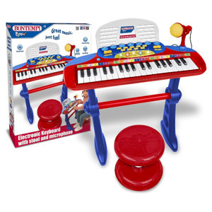 Bontempi Elektronik 37 Tuşlu Ayaklı Mikrofonlu Işıklı Tabureli Org Seti Kırmızı