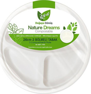 Nature Ekolojik Karton Kağıt Tek Kullanımlık 3 Bölmeli Tabak - 26 Cm. - 50 Adetlik 1 Paket