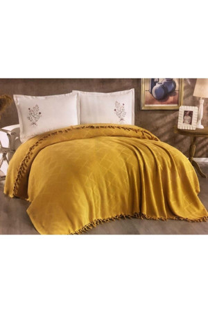 Romans Pike Takımı %100 Pamuklu Çift Kişilik Hardal