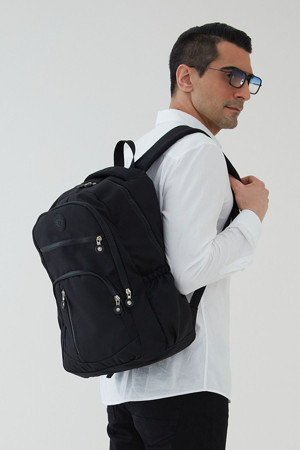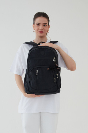 Rosso Collina Unisex Siyah Su Geçirmez Kumaş Büyük Boy Çok Gözlü Okul Seyahat Sırt Çantası Siyah
