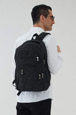 Rosso Collina Unisex İmperteks Kumaş Su Geçirmez Büyük Boy Çok Gözlü Siyah Seyahat Sırt Çantası Okul Çantası - Image 1
