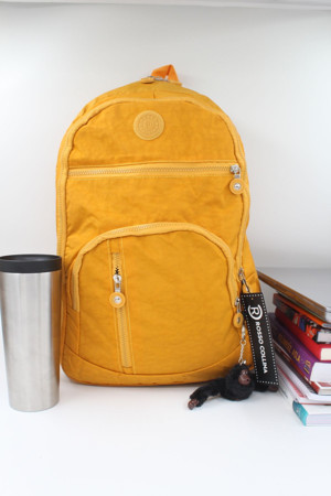 Rosso Collina Unisex Krinkıl Kumaş Su İtici Büyük Boy Çok Gözlü Hardal Seyahat Sırt Çantası Lise Orta Okul Çanta - Image 1