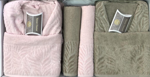 Yanar Home Pamuklu Jakarlı 8 Parça Aile Bornoz Seti Takımı