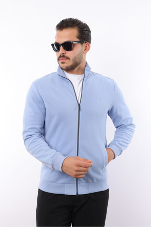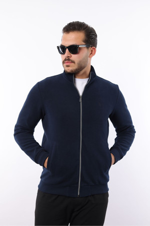 Pamuk Düz Selanik Dokuma Mont Yaka Sweatshirt Nefti