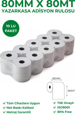 80X80 Termal Rulo - Yazarkasa Adisyon Rulosu 10 Paket 100 Adet