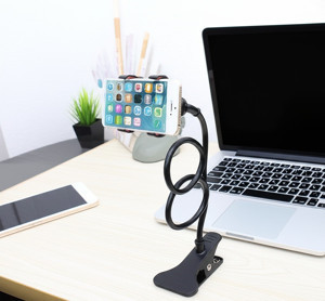 Akrobat Telefon Tutucu 60cm Spiral Gövdeli, 360° Oynar Başlıklı,Araç/Ofis/Yatak Kullanımı İçin Siyah