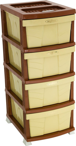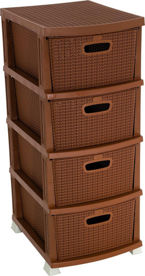 Plastik Elegant Desenli Komidin (4 Çekmeceli Sebzelik) Kahverengi