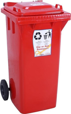 Plastik Çöp ve Atık Konteyneri 120 Lt Tekerlekli Orjinal Kırmızı