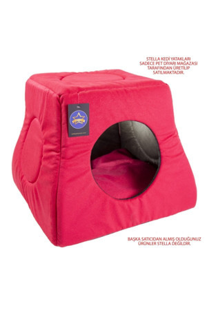 Kırmızı Kedi Yatağı - Kedi Evi - 3 Fonksiyonlu - Katlanır - Kedi Mağara - Trio Minderi
