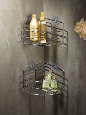 Ömür Boyu Paslanmaz Yapışkanlı Banyo Köşeliği Düzenleyici Şampuanlık Duş Rafı 2 Adet Krom TK-01