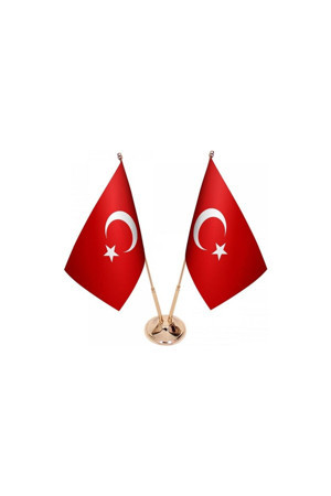 Masa Üstü Ikili Türkiye Cumhuriyeti Bayrağı Ikili Pirinç Direk Masa Bayrağı