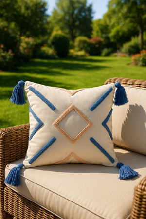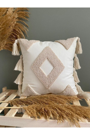 Kırlent El Yapımı Punch Işi Dekoratif Yastık Kılıfı Ekru