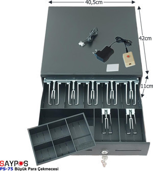 7 Banknot Gözlü Kolay Açma Buton ve Adaptörlü, Anahtardan Açılır Para Çekmecesi 40,5x42x11cm