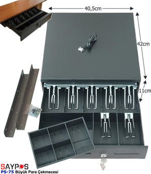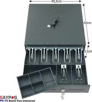 7 Banknot Gözlü Yazarkasa Pos Bağlantılı ve Anahtardan Açılır Büyük Para Çekmecesi 40,5x42x11cm