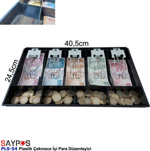 Plastik Çekmece İçi Para Düzenleyici 5 Banknot 4 Bozuk Para Gözlü 40,5 x 24,5 x 3,5cm