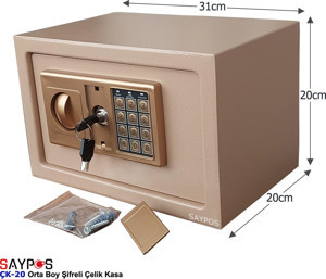 Şık Tasarımlı Orta Boy Şifreli Çelik Kasa, Elektronik Tuşlu Değerli Eşya ve Para Kasası 31x20x20cm