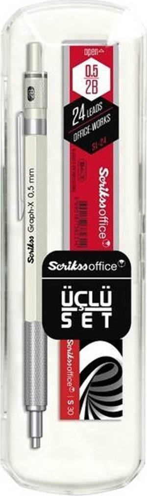 Scrikss Oficce Graph-x 3'lü Set Beyaz Versatil Kalem 0.5mm + Silgi + Min