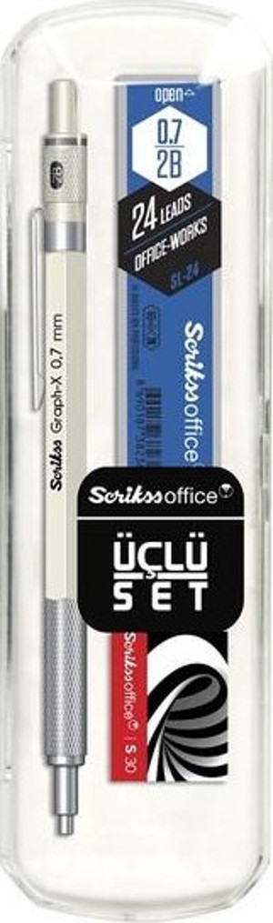 Scrikss Oficce Graph-x 3'lü Set Kurşuni Versatil Kalem 0.7mm + Silgi + 07 Min