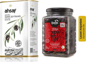 Avantajlı Zeytin+Yağı Paketi (Ahsaf Soğuk Sıkım Zeytinyağı 1 lt + Şems Siyah Zeytin 291-320 1 kg)