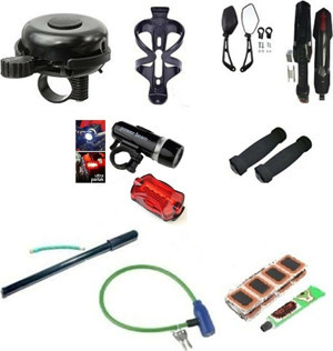 Servis Bisiklet Aksesuar Seti 4 Lü Set ( silikon aydınlatma ön arka-çamurluk-zil-suluk kafes) - Image 1