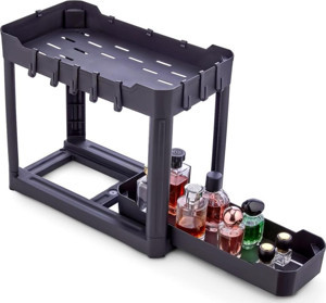 2 Katlı Sürgü Çekmeceli Tezgah Altı Organizer Siyah (40x22x33cm)
