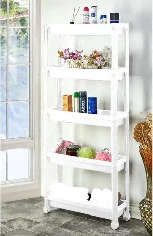 5 Katlı Tekerlekli Diktördgen Organizetör Raf Beyaz