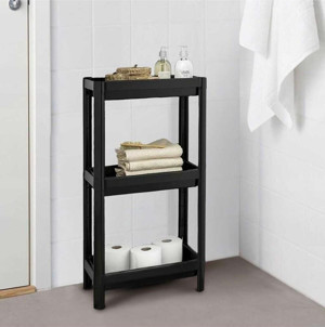 3 Katlı Siyah Raf Ünitesi Pratik Çok Amaçlı Düzenleyici Banyo Rafı