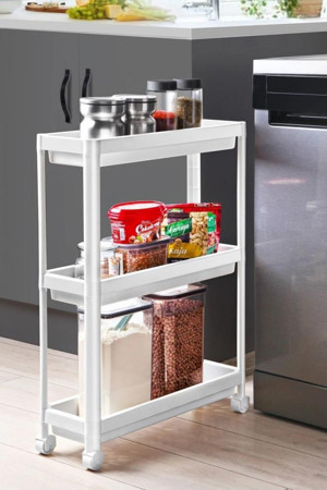 4 Katlı Tekerlekli Diktördgen Organizetör Raf Beyaz