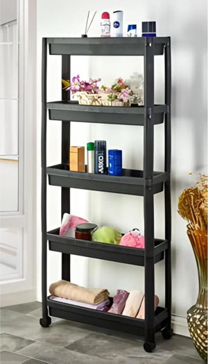 5 Katlı Tekerlekli Organizer Diktördgen Raf Ünitesi Siyah