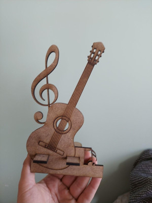 Ahşap Gitar Ve Nota Temalı Masaüstü Telefon Tutucu