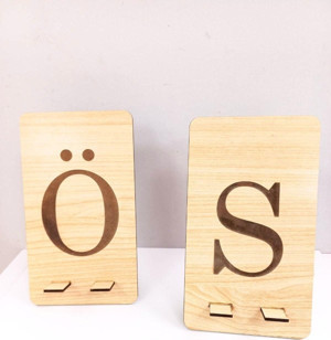2 Adet Ahşap Desenli Mdf Harfli Telefon Tutucu