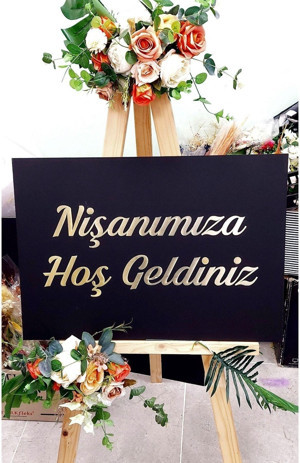 Nişanımıza Hoş Geldiniz Siyah Zemin Gold Pleksi Yazılı Karşılama Panosu