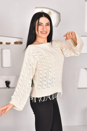 Kadın Mevsimlik Desenli Şık Pamuk Ajurlu Kazak Taş Standart