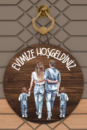 Modern Ahşap Kapı Süsü - Ahşap Zemin Aile Evimize Hoşgeldiniz Kapı Süsü - Dış Mekan Kapi Susu