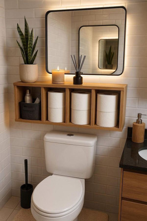 Doğal Ahşap,Tuvalet Kağıtlığı, Tuvalet Kağıdı Standı,2'Li Raf Set Drk705