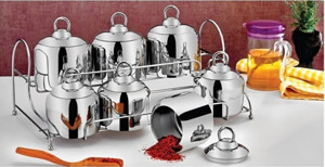 Sıla Berfin 15 Parça Standlı Sade Çelik Kapak Baharat Takımı