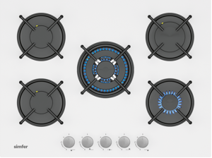 Simfer 3751 4 Gözü Gazlı + 1 Wok Cam Ankastre Ocak, 70 cm,