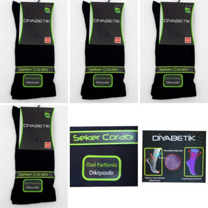 Erkek Siyah Diyabetik Çorap Özel Parfümlü Şeker Çorabı 6 Adet Çok Renkli Standart