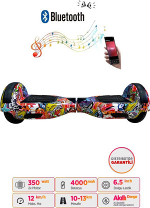 Elektrikli Kaykay Hoverboard 6.5 Inch Gökkuşağı Grafity Desenli Akıllı Dengeli D18