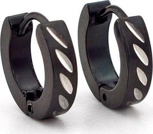 Solfera SİYAH YAPRAK DESENLİ ÇELİK UNİSEX ERKEK HALKA KÜPE E965