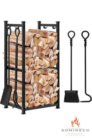 5 Li Ithal Metal Odunluk Raflı Şömine -soba Maşa Takımı Aksesuar Seti SS-001