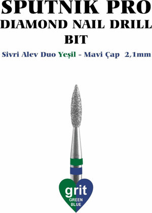 Elmas Sivri Alev Freze Duo Yeşil-Mavi Çap 2,1mm