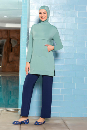 Tesettür Mayo Likralı Kanguru Cepli Turkuaz